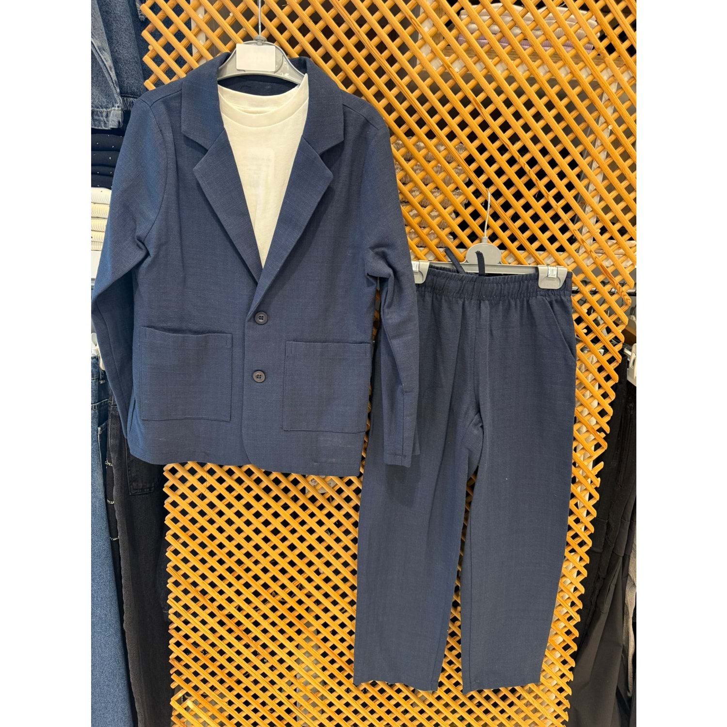 7570 ÇOCUK KETEN İÇİ TİŞORTLU ÜÇLÜ TAKIM