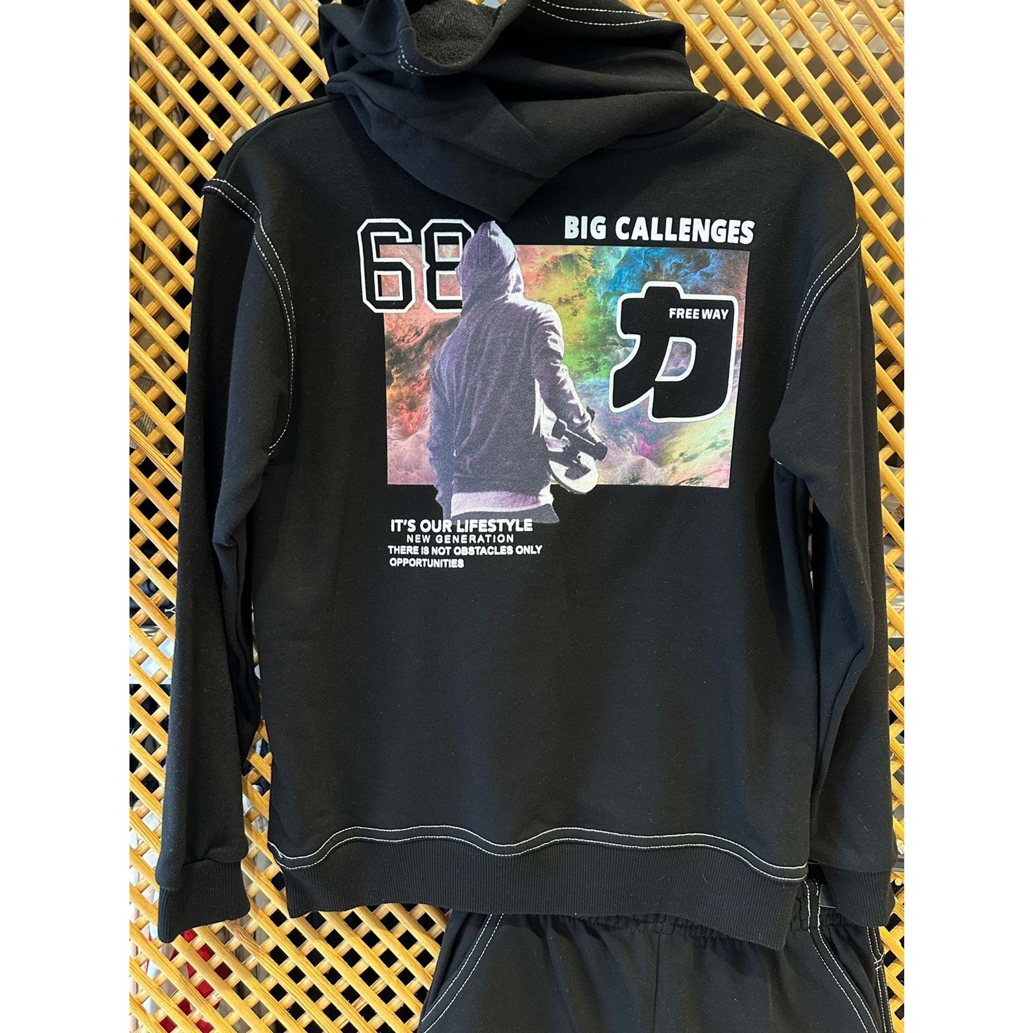 4006 ÇOCUK KAPŞONLU SIRTI BASKILI TAKIM - PD KIDS - ÇOCUK - SİYAH - 12/13 - ST000002137-SİYAH-12/13
