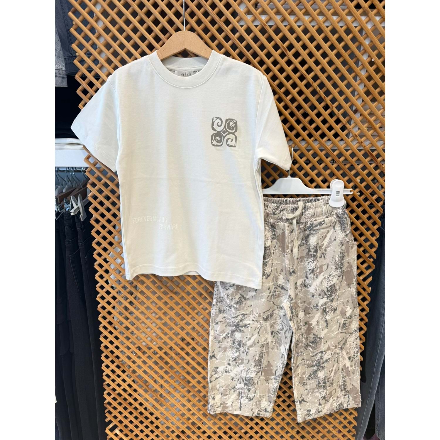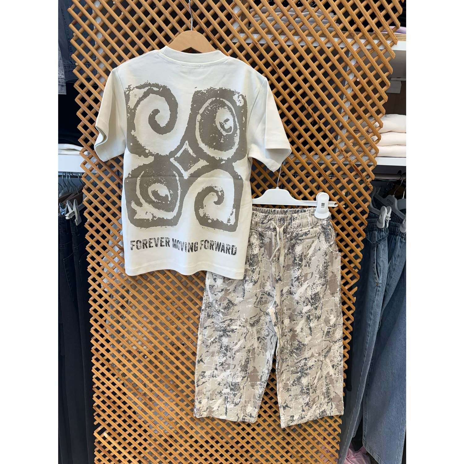 61503-41504 ÇOCUK DESENLİ BOL PANTOLON SIRTI BASKILI TİŞÖRT TAKIM