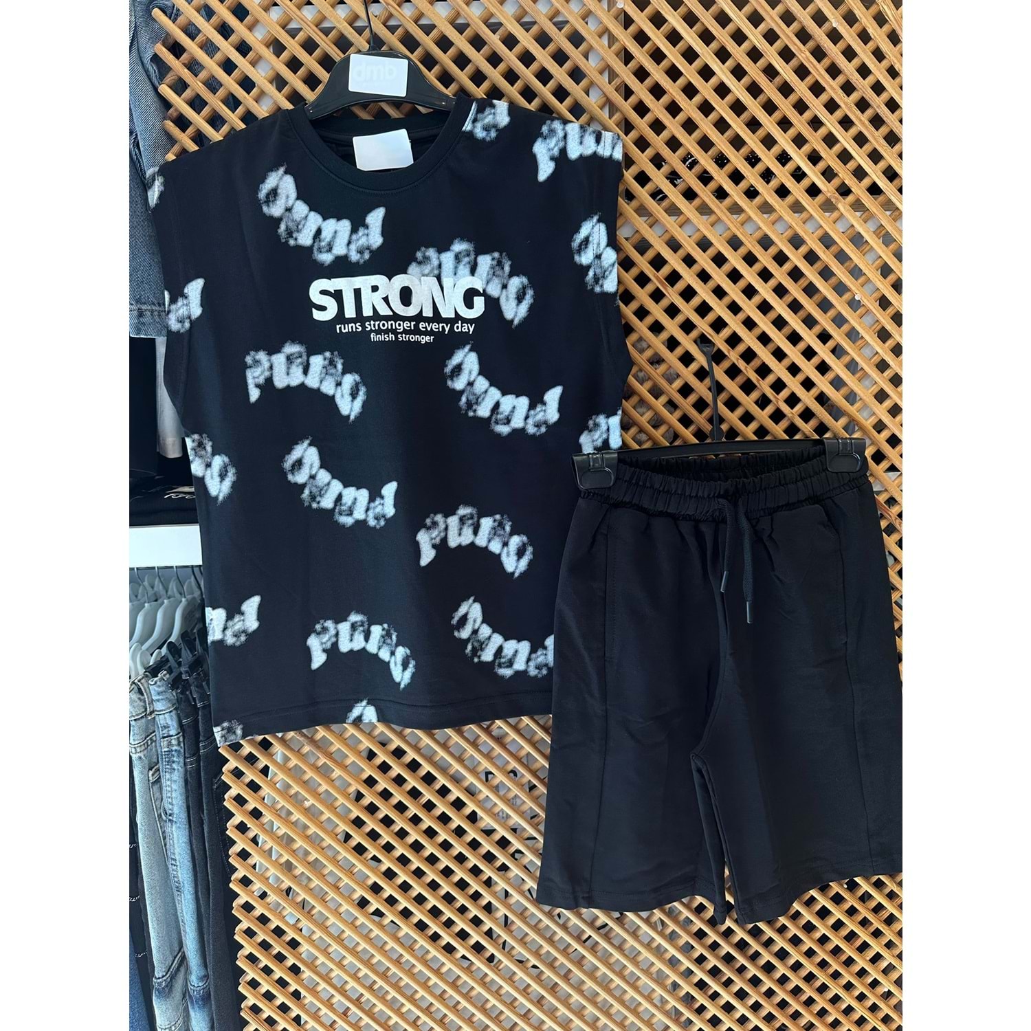 21300 ÇOCUK PAMUKLU PENYE ASKILI ÜST BASKI DETAY ŞORTLU TAKIM