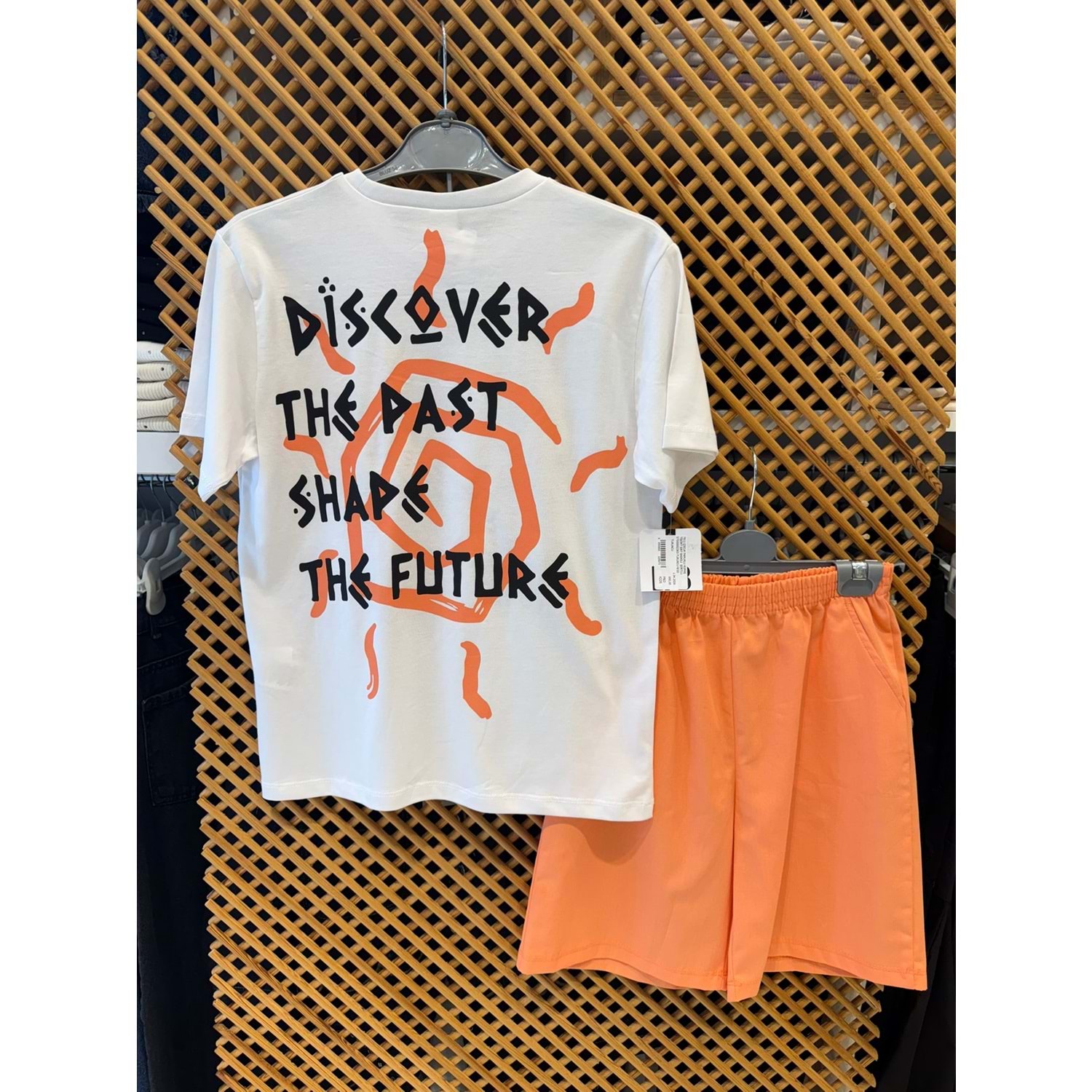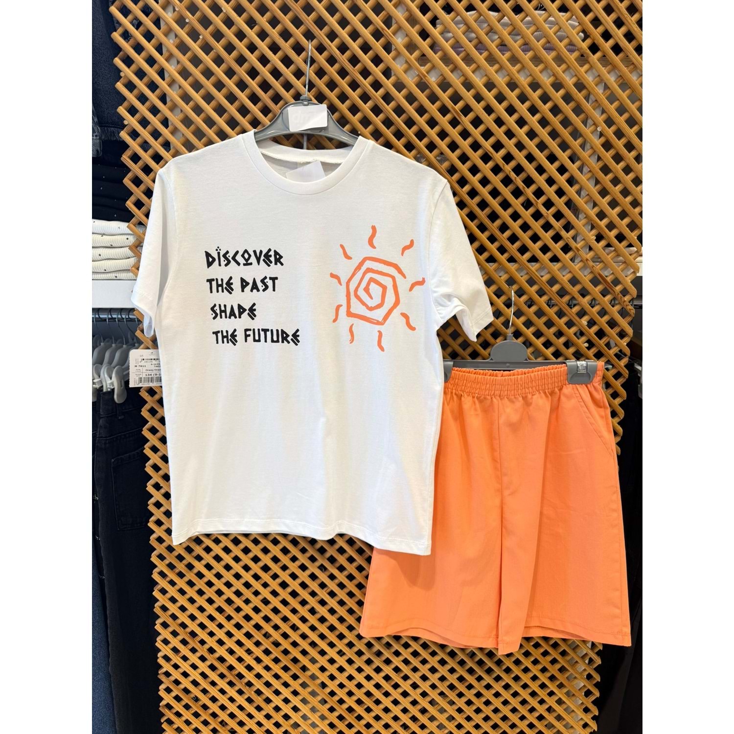 7611 ÇOCUK PAMUKLU KUMAŞ TİŞÖRT SIRT BASKILI ŞORTLU TAKIM