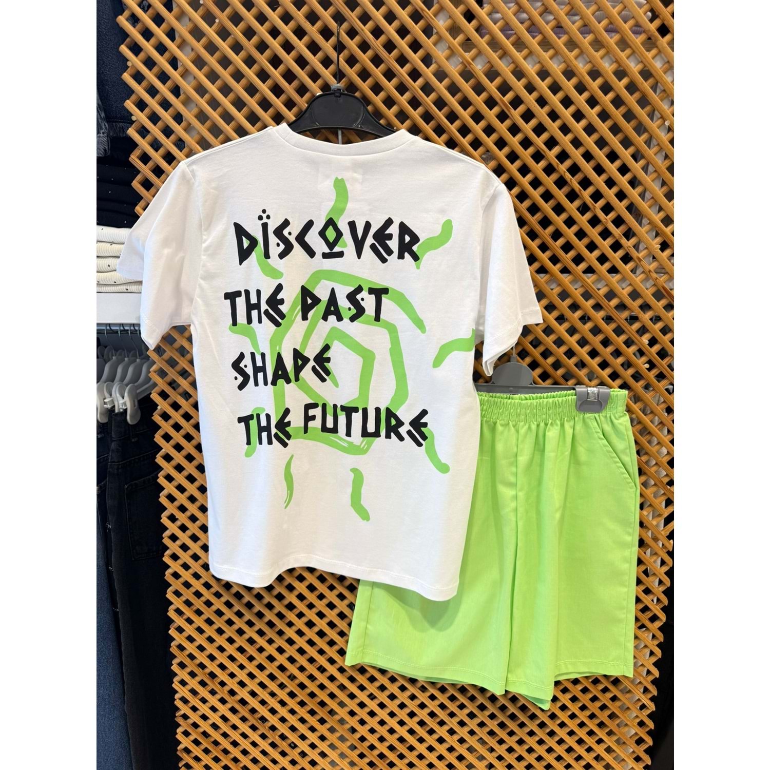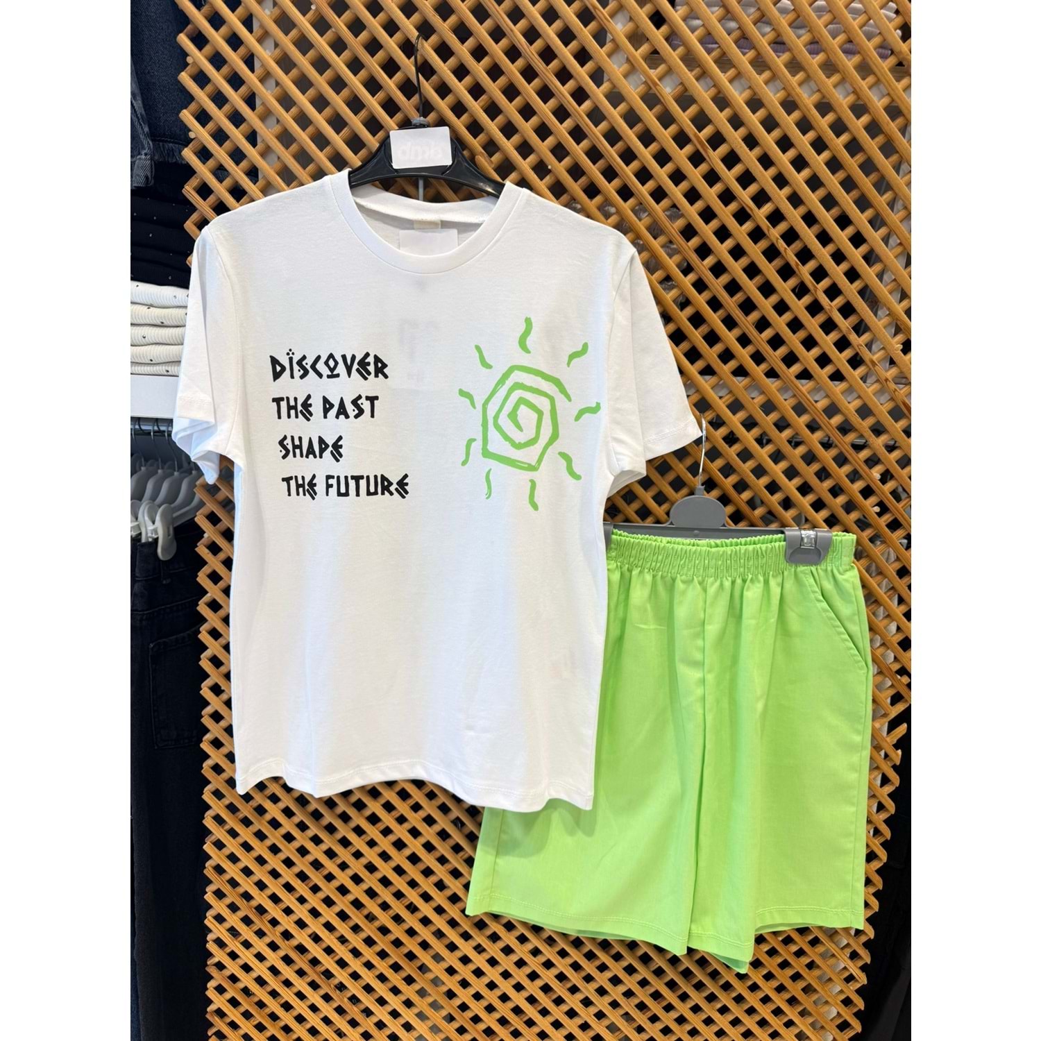 7611 ÇOCUK PAMUKLU KUMAŞ TİŞÖRT SIRT BASKILI ŞORTLU TAKIM