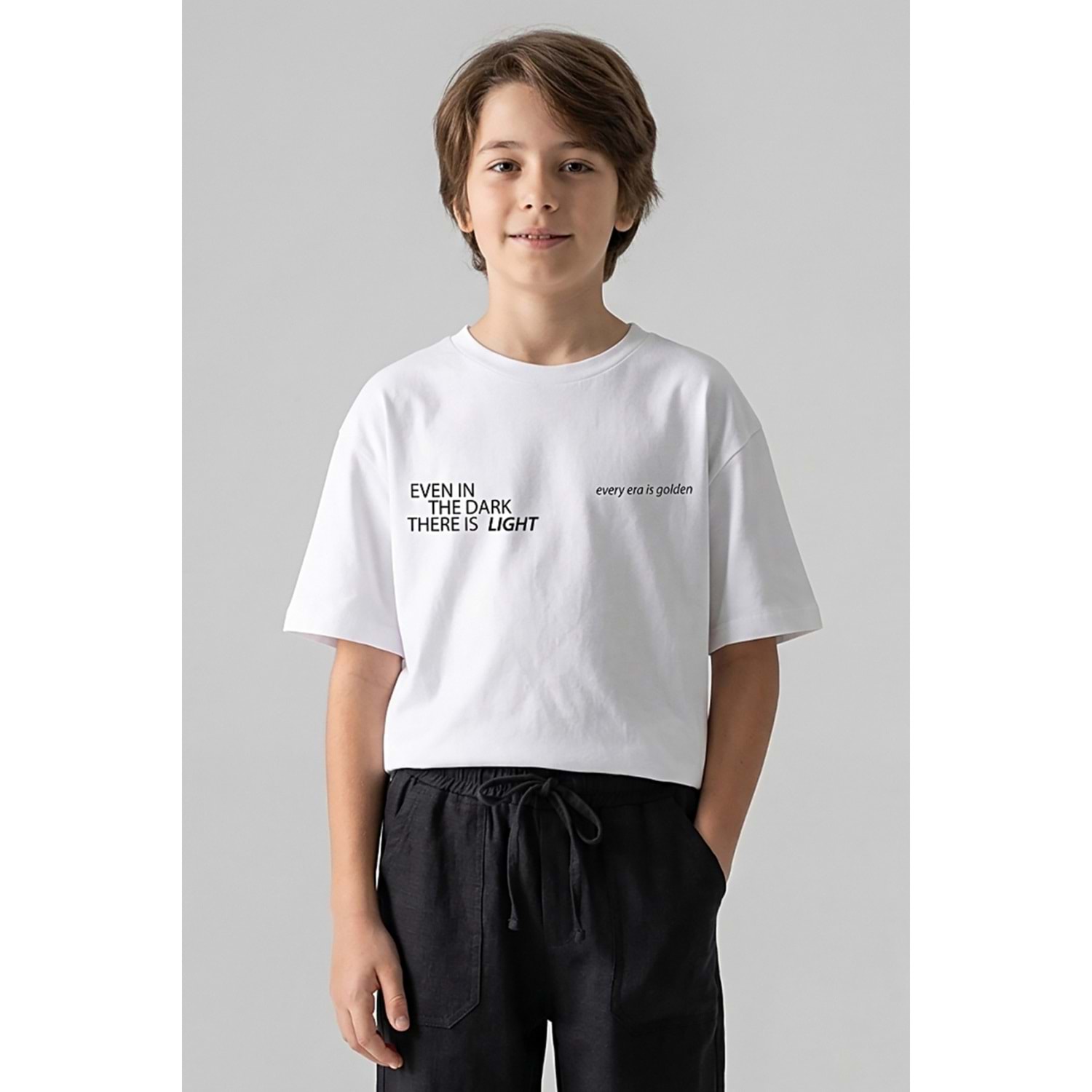 7780 ÇOCUK ÖNÜ VE ARKASI YAZILI BASKILI TİŞÖRT