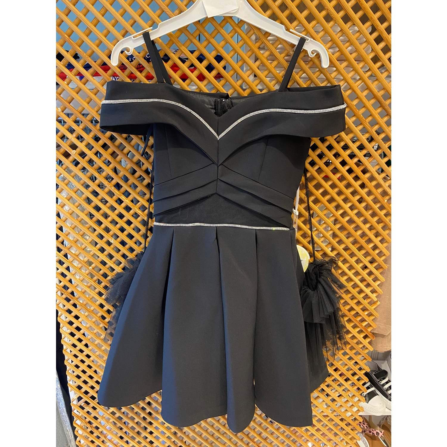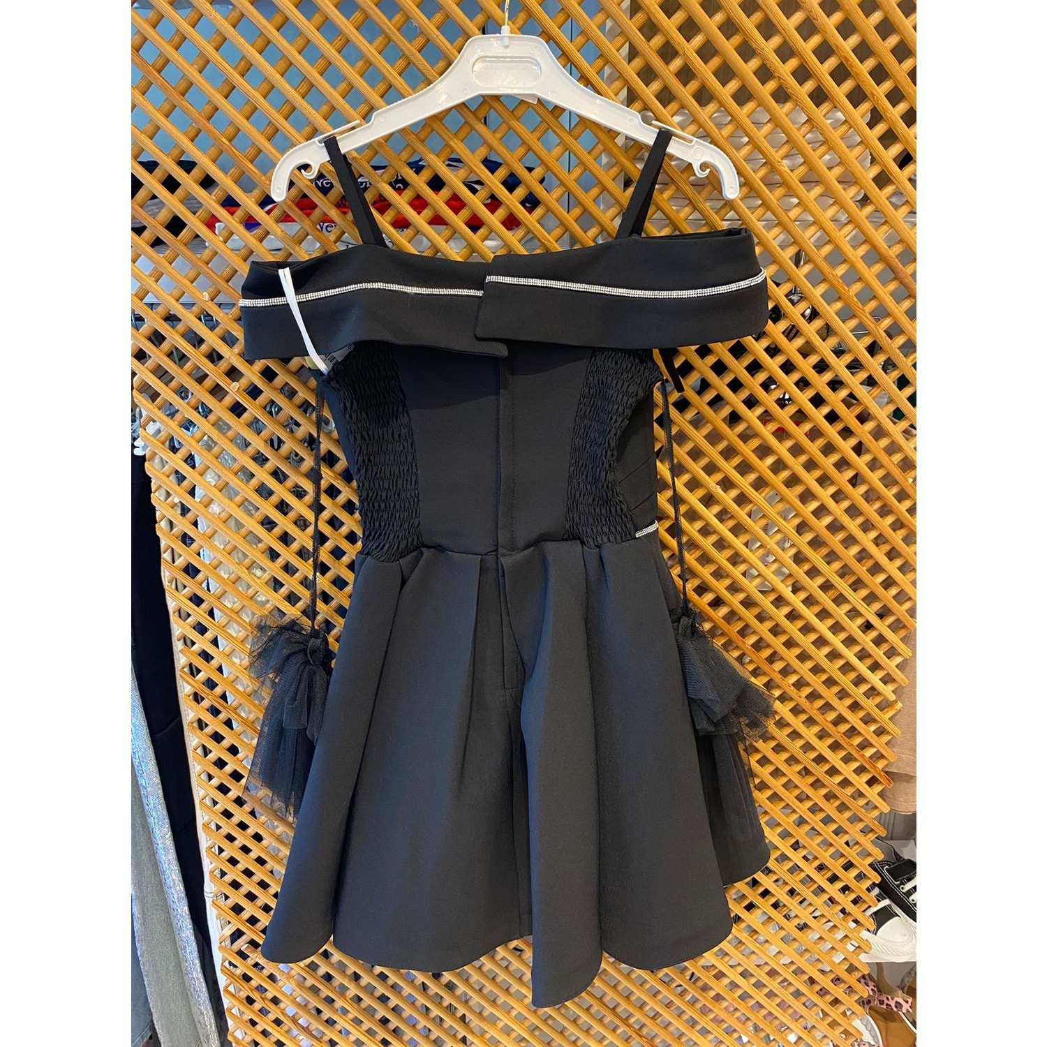 838 ÇOCUK TAŞLI OMUZ DETAYLI ELBİSE
