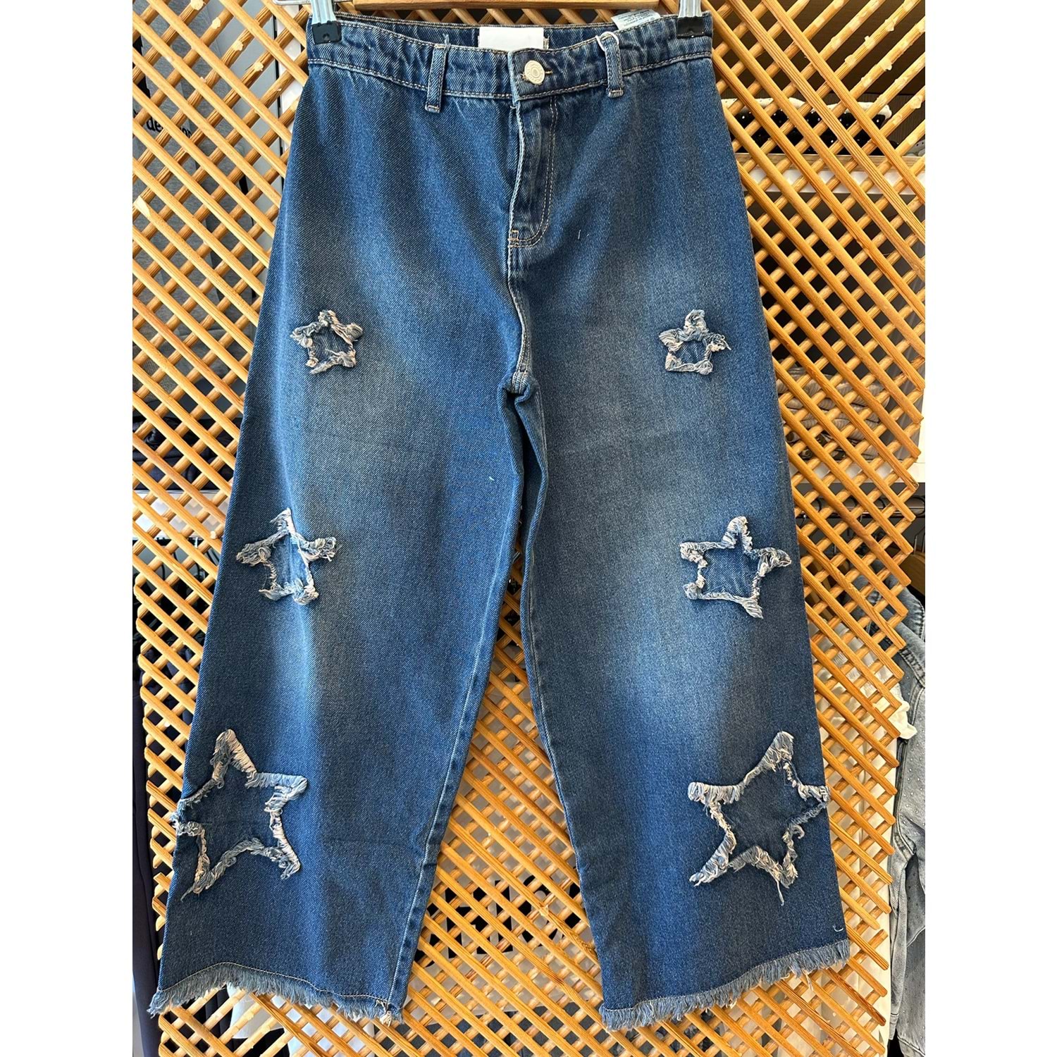 25141 ÇOCUK YILDIZ APLİKELİ BOL PAÇA KOT PANTOLON - PD KIDS