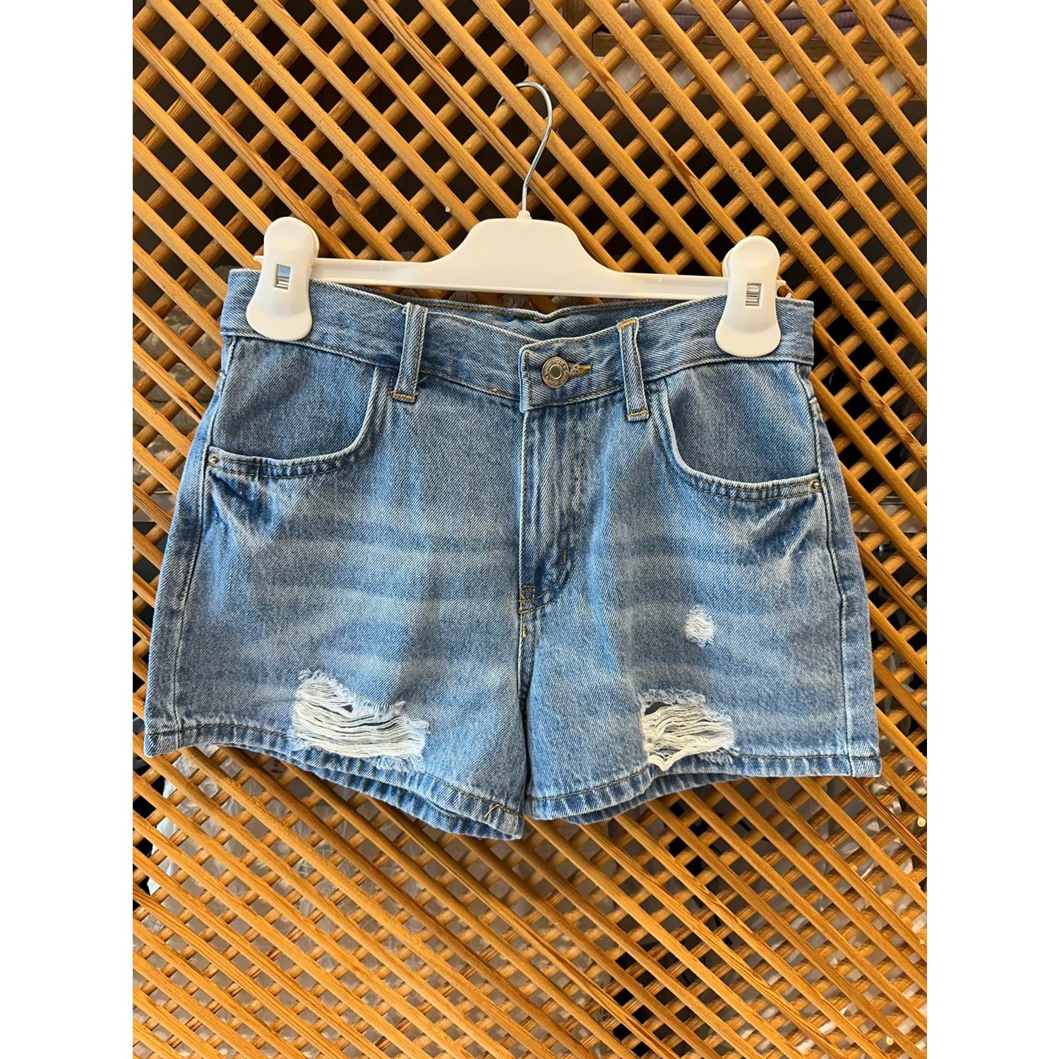 1700 ÇOCUK YIRTIK DETAYLI KISA KOT ŞORT (MAVİ)