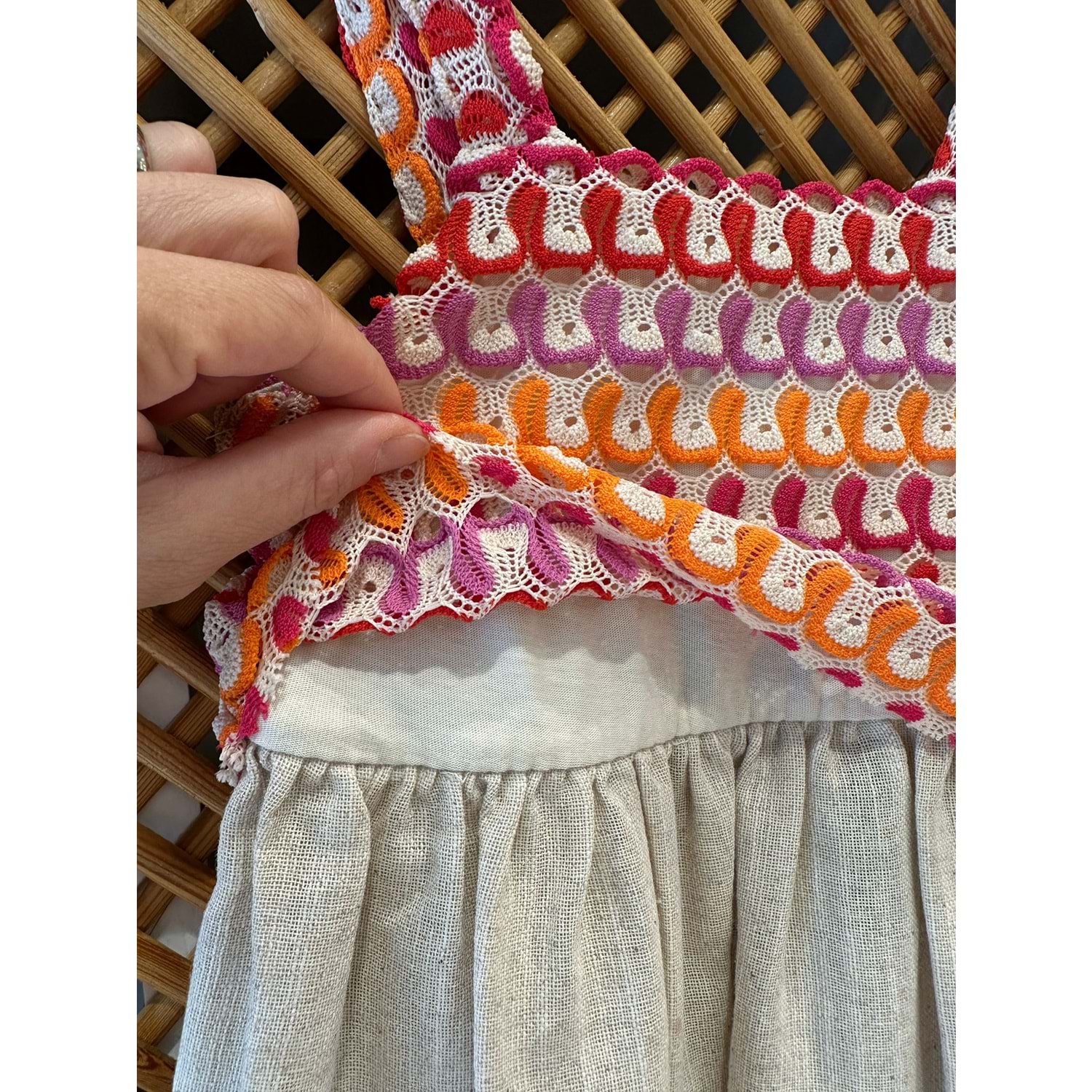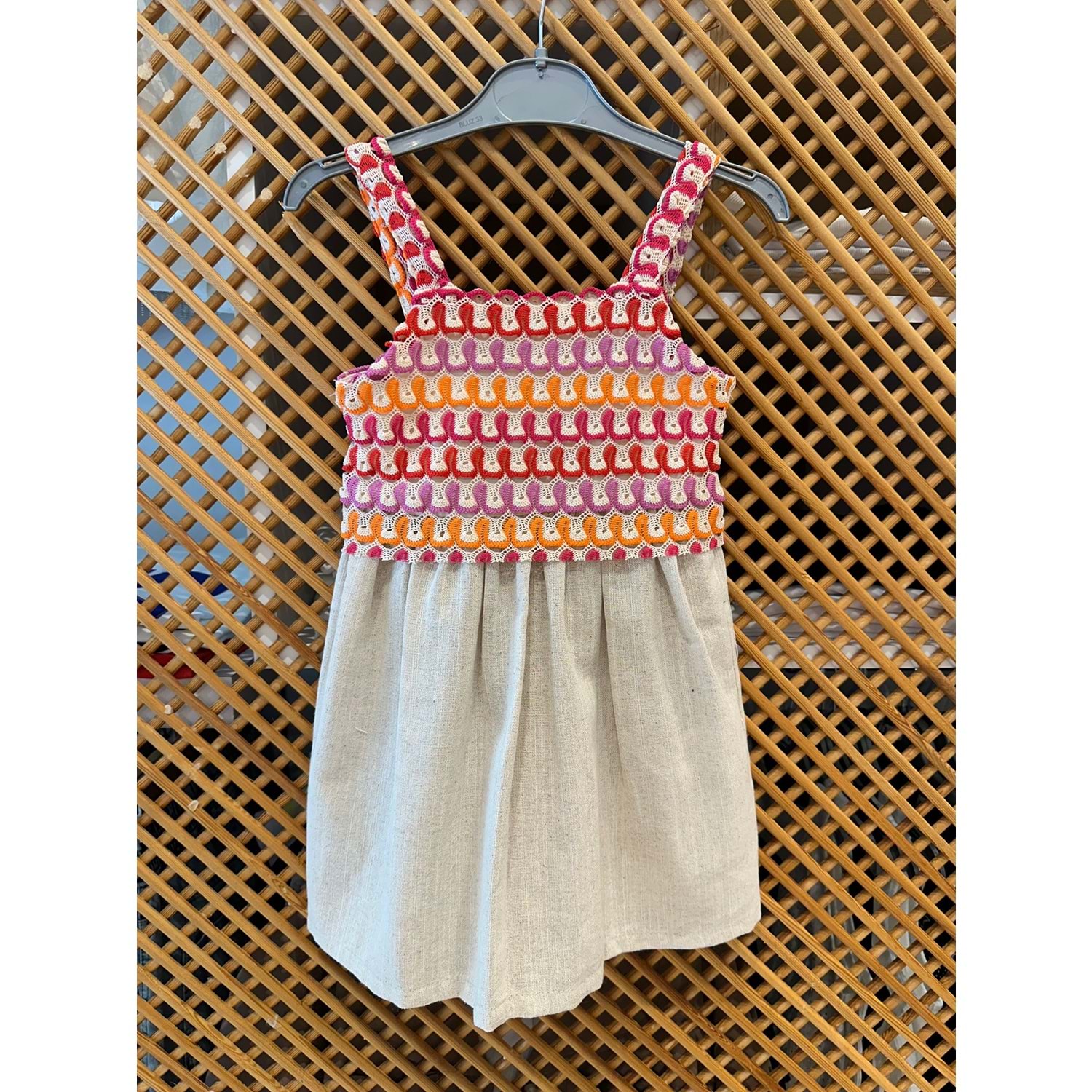 0710 ÇOCUK ÜST DANTEL ALT KETEN ELBİSE