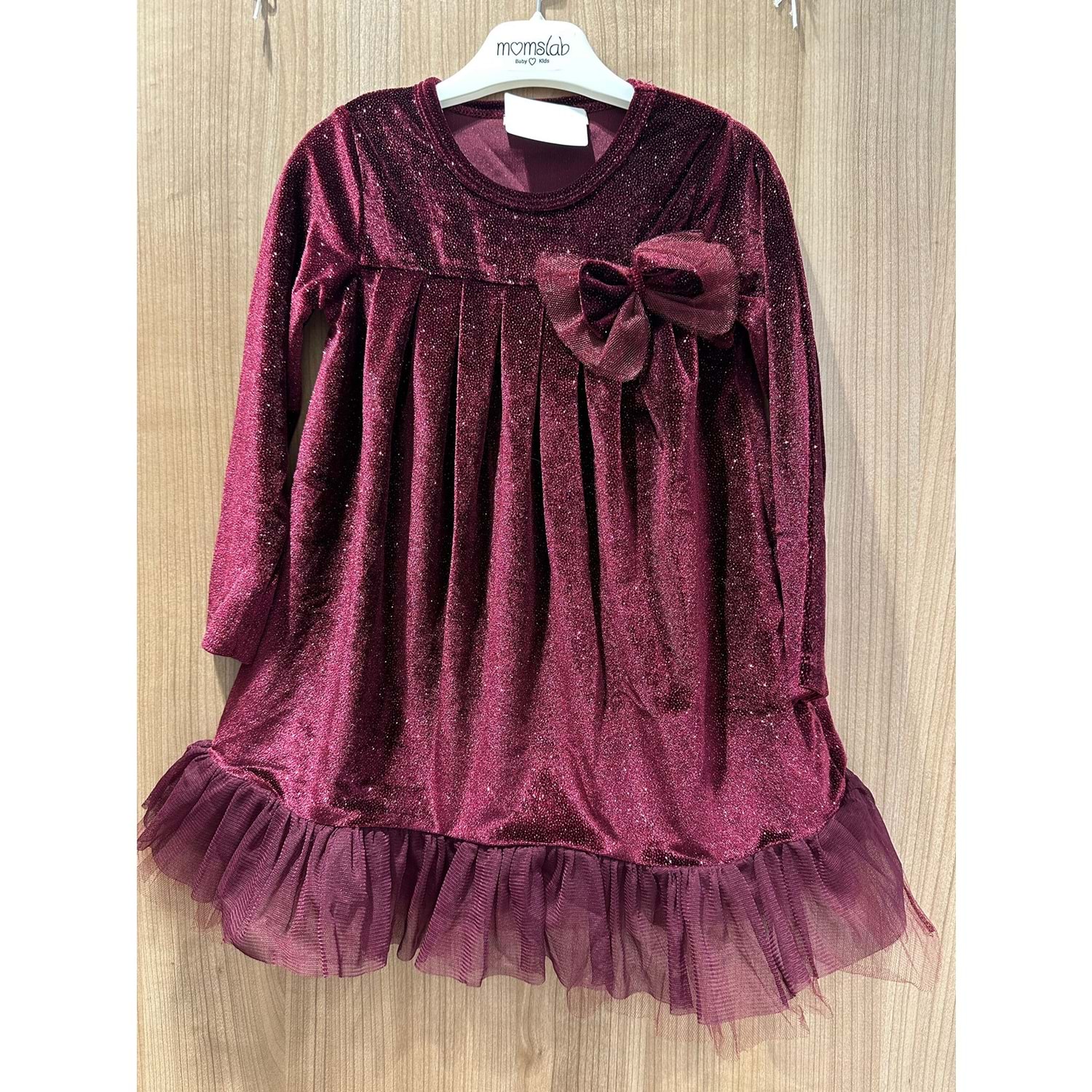 6763 KIZ ÇOCUK SİMLİ KADİFE ROBALI ETEĞİ FIRFIRLI ELBİSE