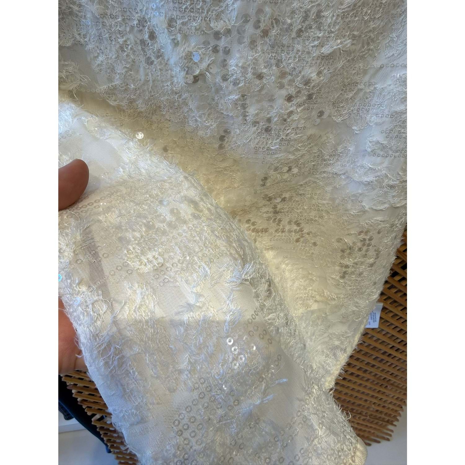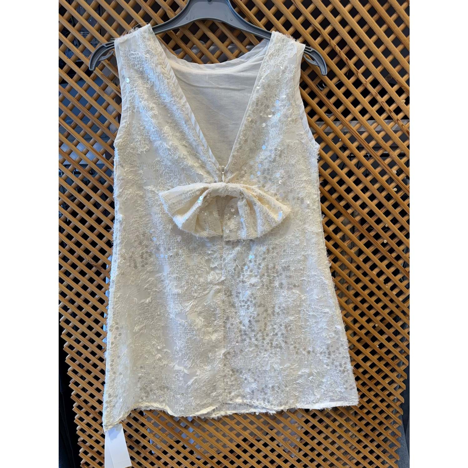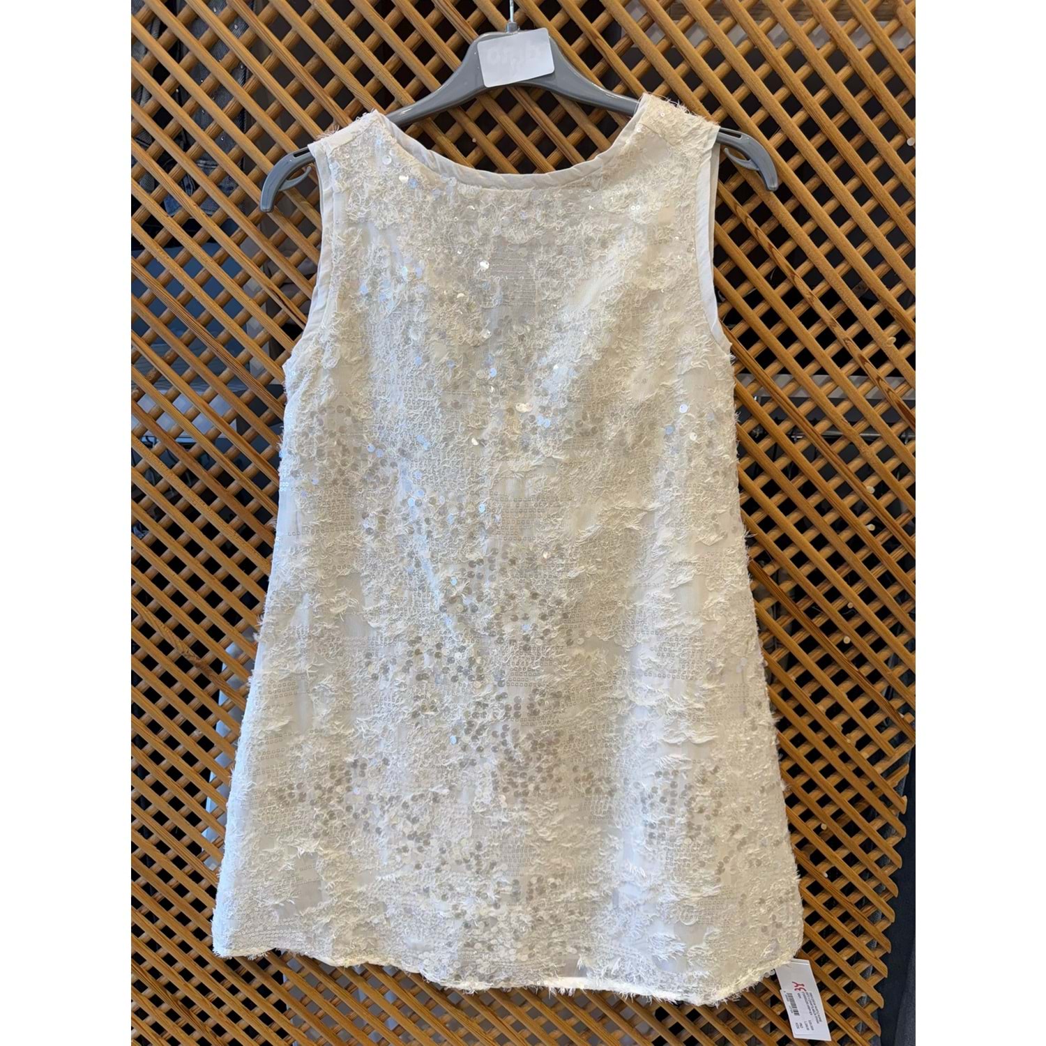 70863 ÇOCUK PAYETLİ KUMAŞ SIRTI V ÇIKARTILABİLİR FİYONK DETAYLI ELBİSE