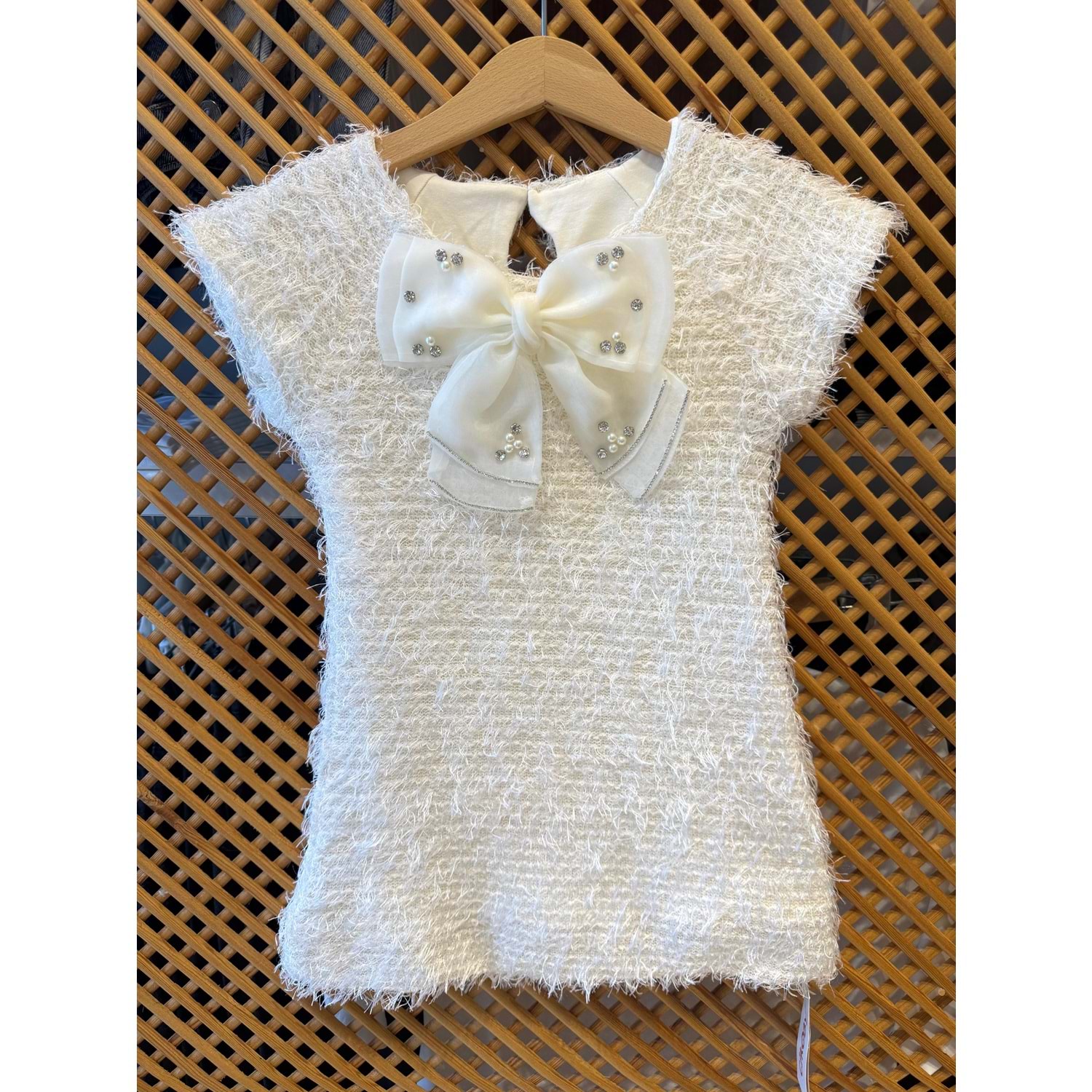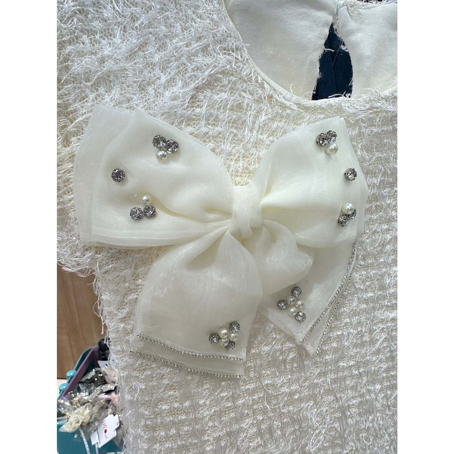 75426 ÇOCUK PÜSKÜLLÜ KUMAŞ ÇIKARILABİLİR ORGANZE FİYONKLU ELBİSE