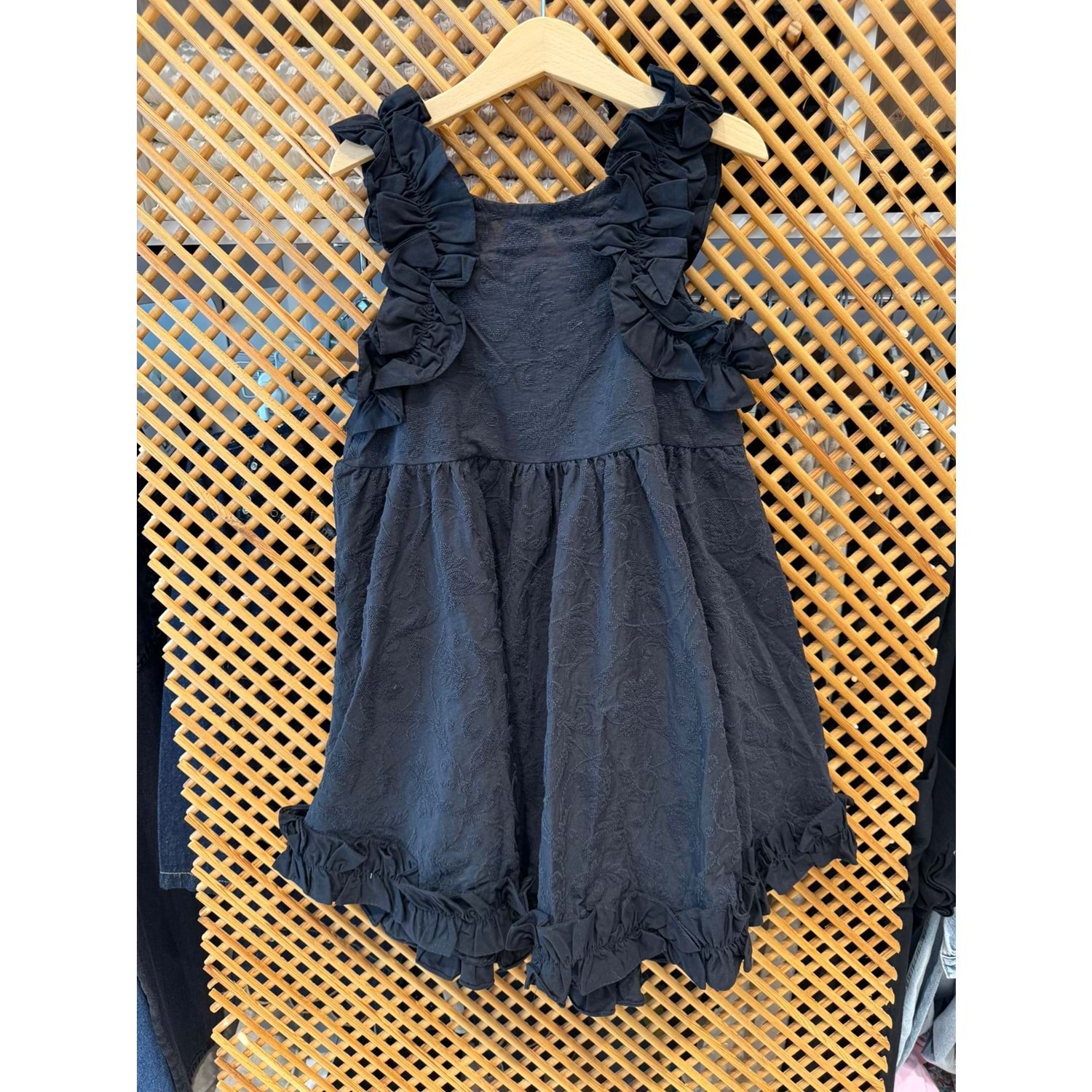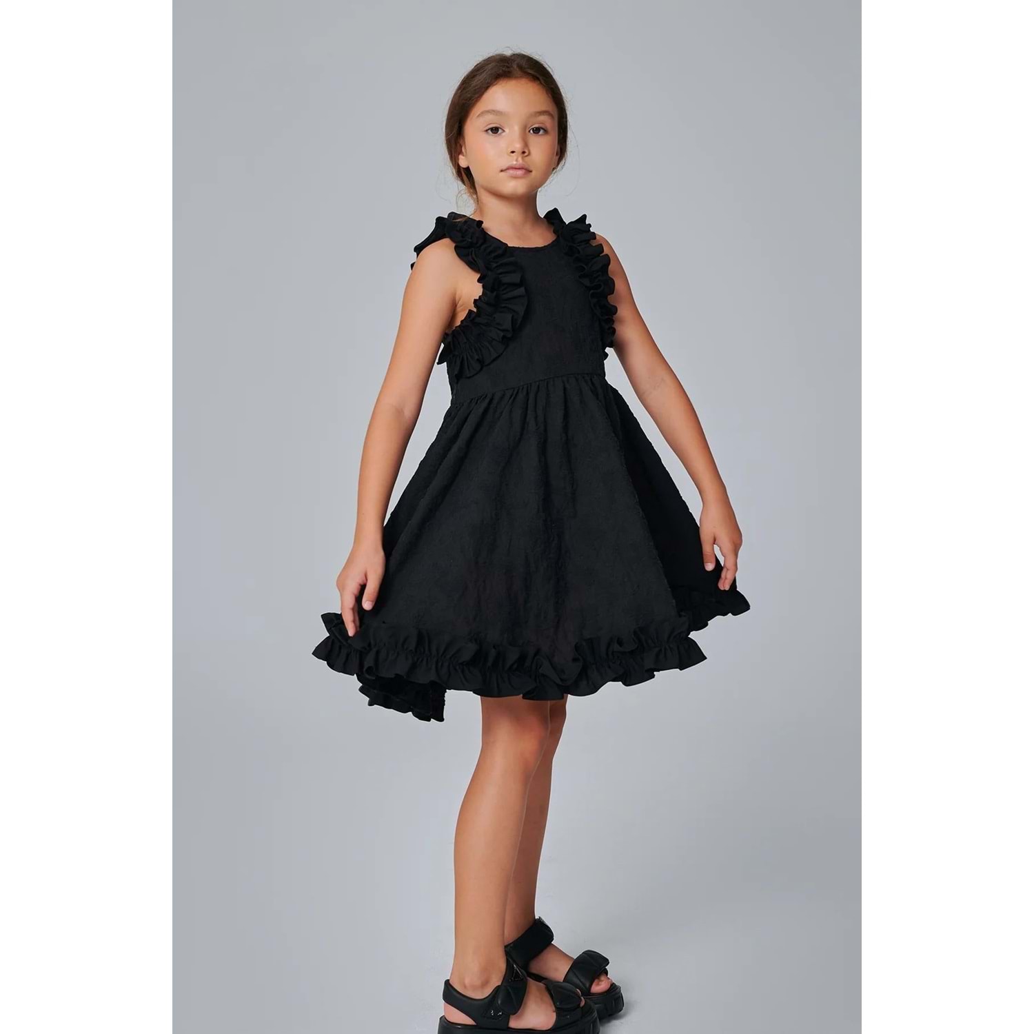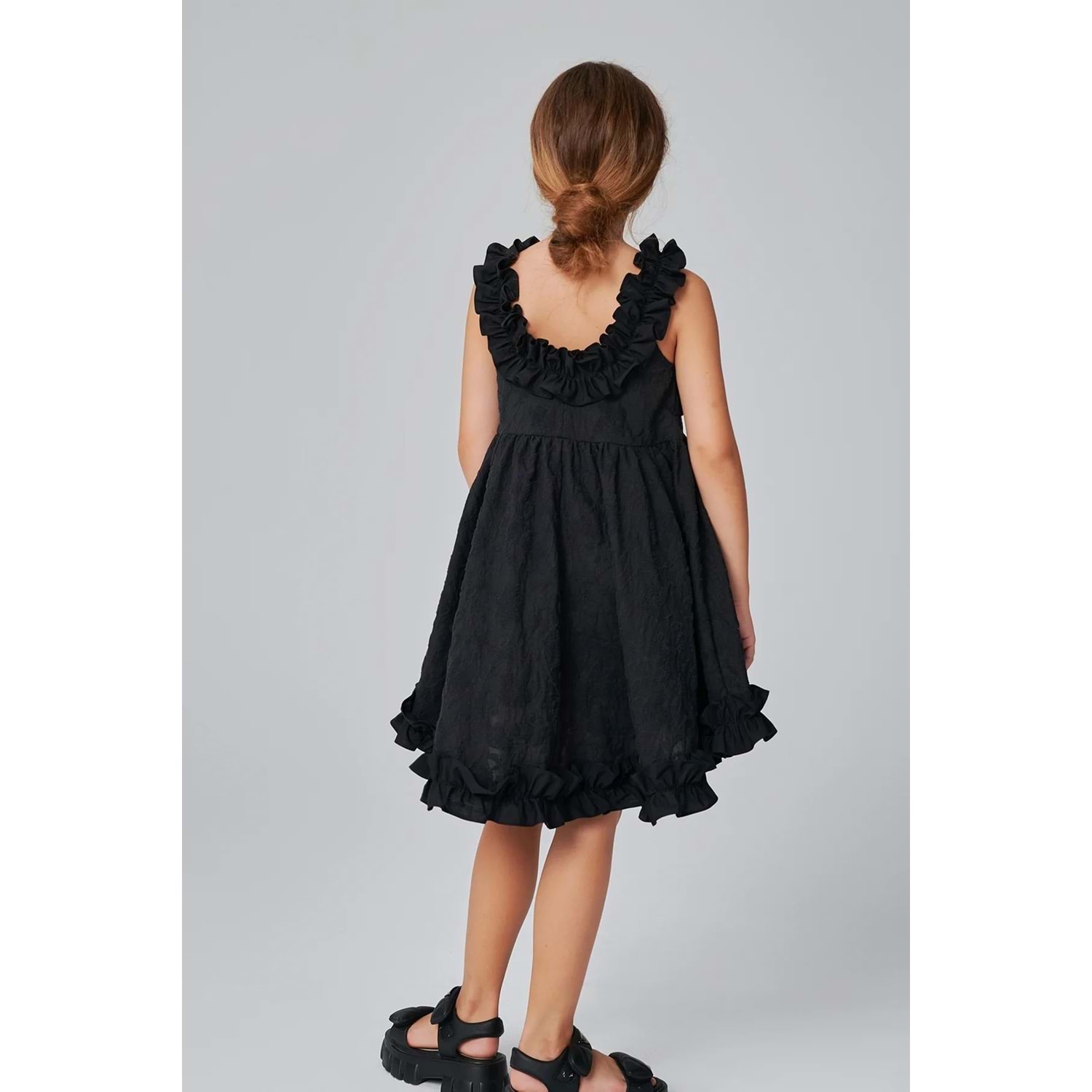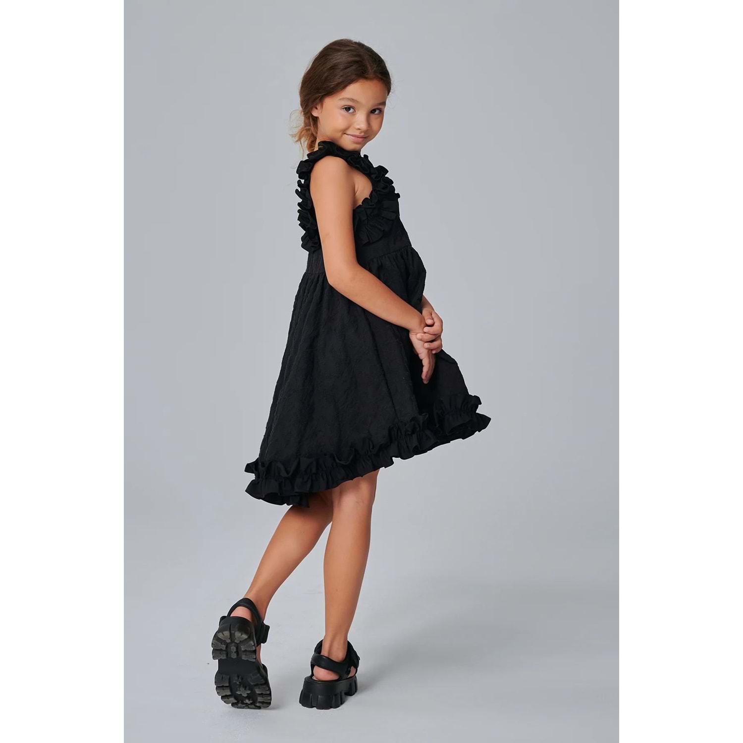 DSL0561 ÇOCUK BROKAR KUMAŞ FIRFIR DETAYLI ELBİSE