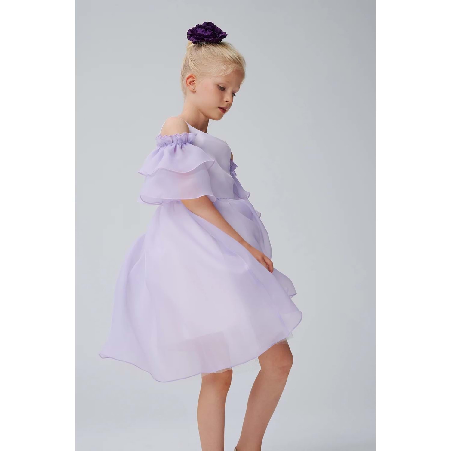 DSL0572 ÇOCUK KOL DETAYLI ORGANZE KABARIK ELBİSE