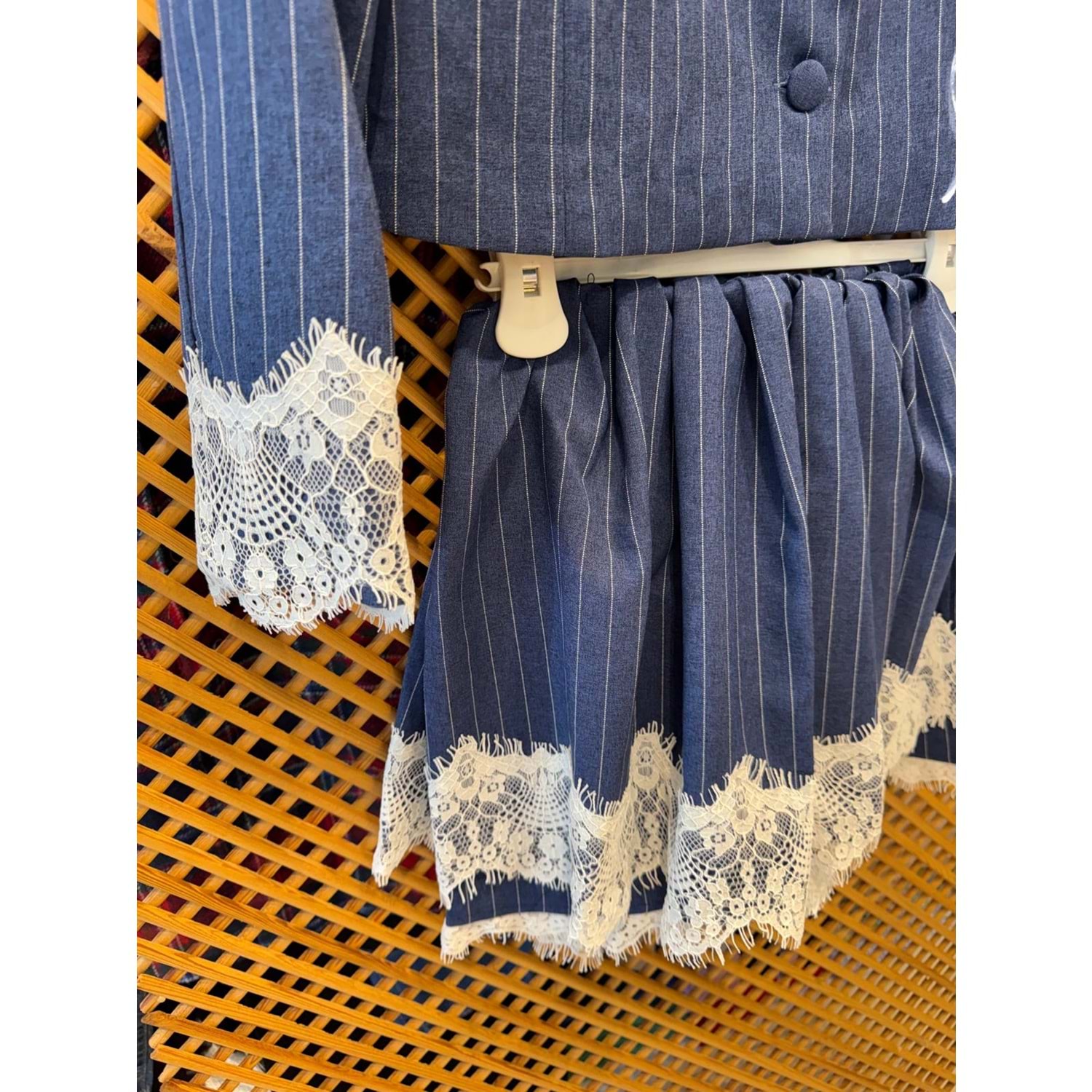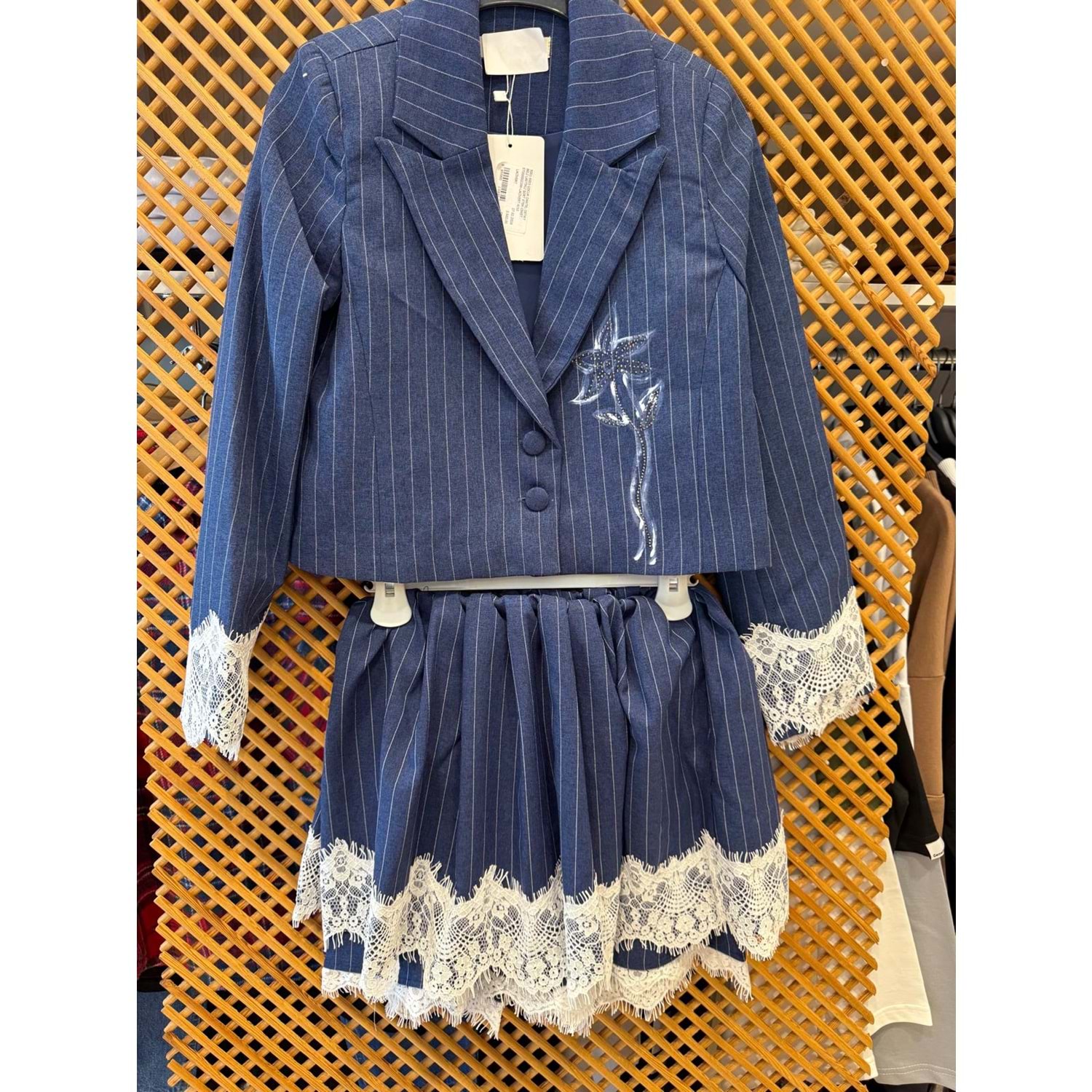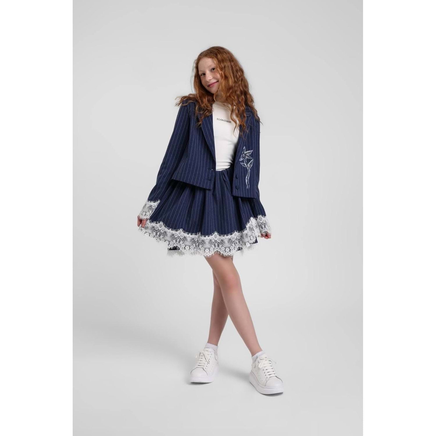 5001-5003 ÇOCUK DANTEL DETAY BELİ LASTİKLİ ŞORT ETEK CEKET TAKIM