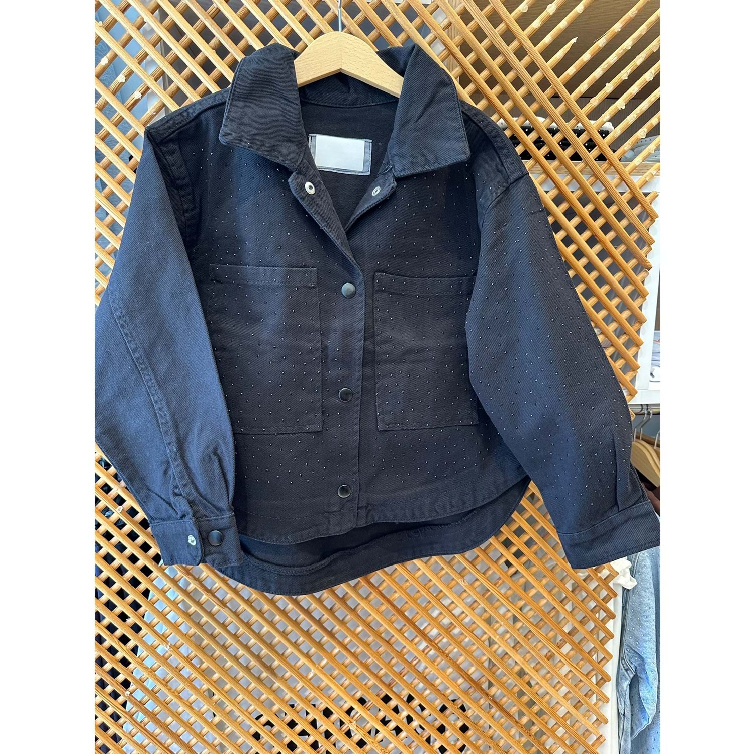 23200 ÇOCUK KOLLARI ÖNÜ TAŞLI KOT CEKET - PD KIDS