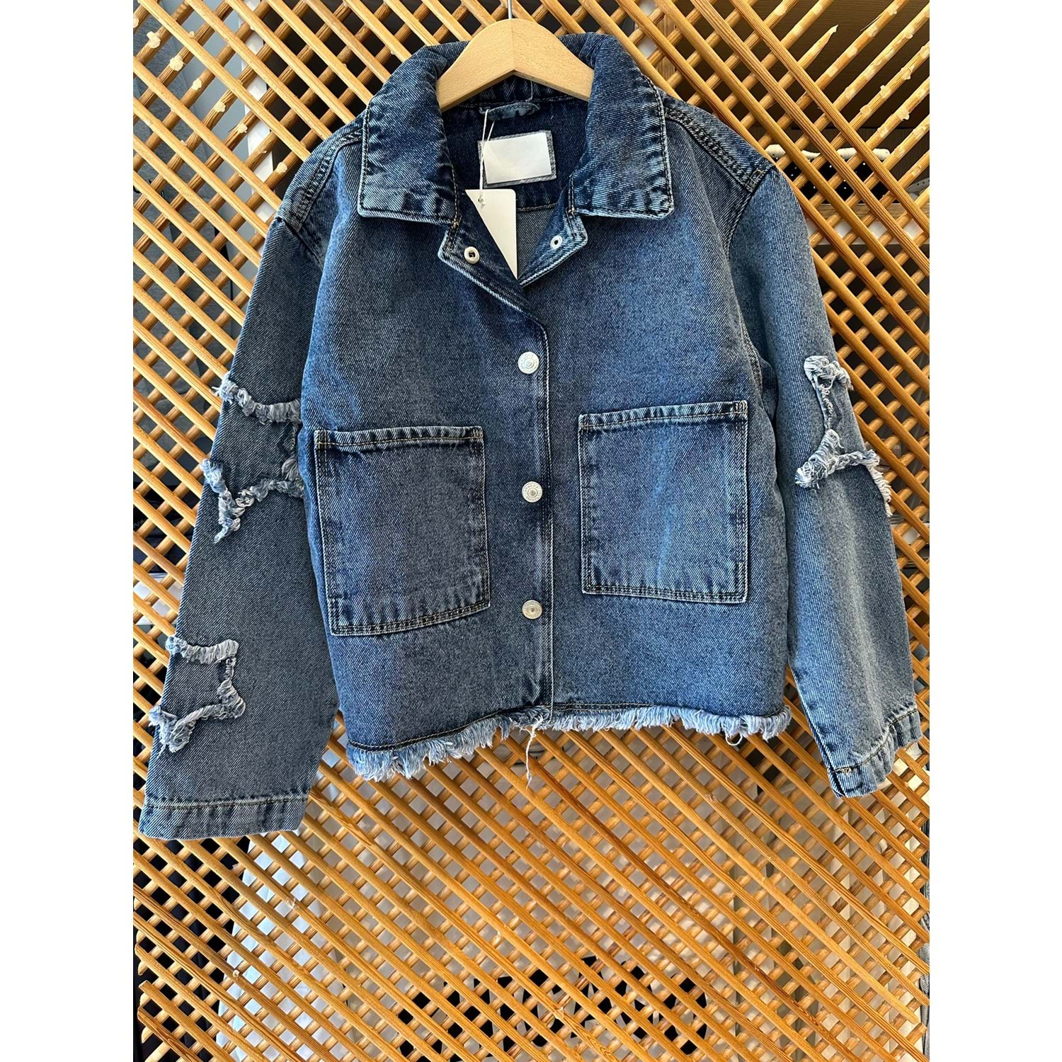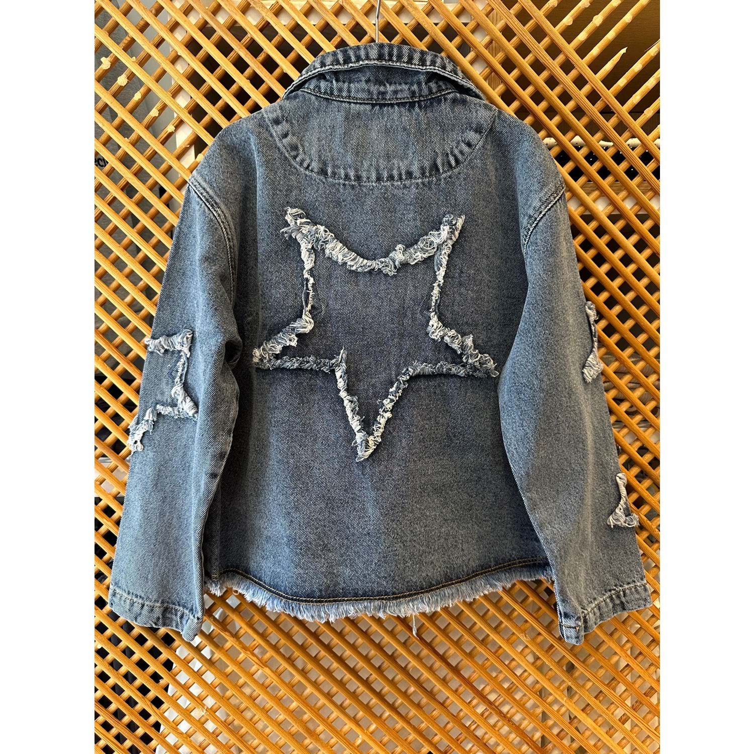 25184 ÇOCUK KOLLARI SIRTI YILDIZ ETEĞİ PÜSKÜL KOT CEKET - PD KIDS