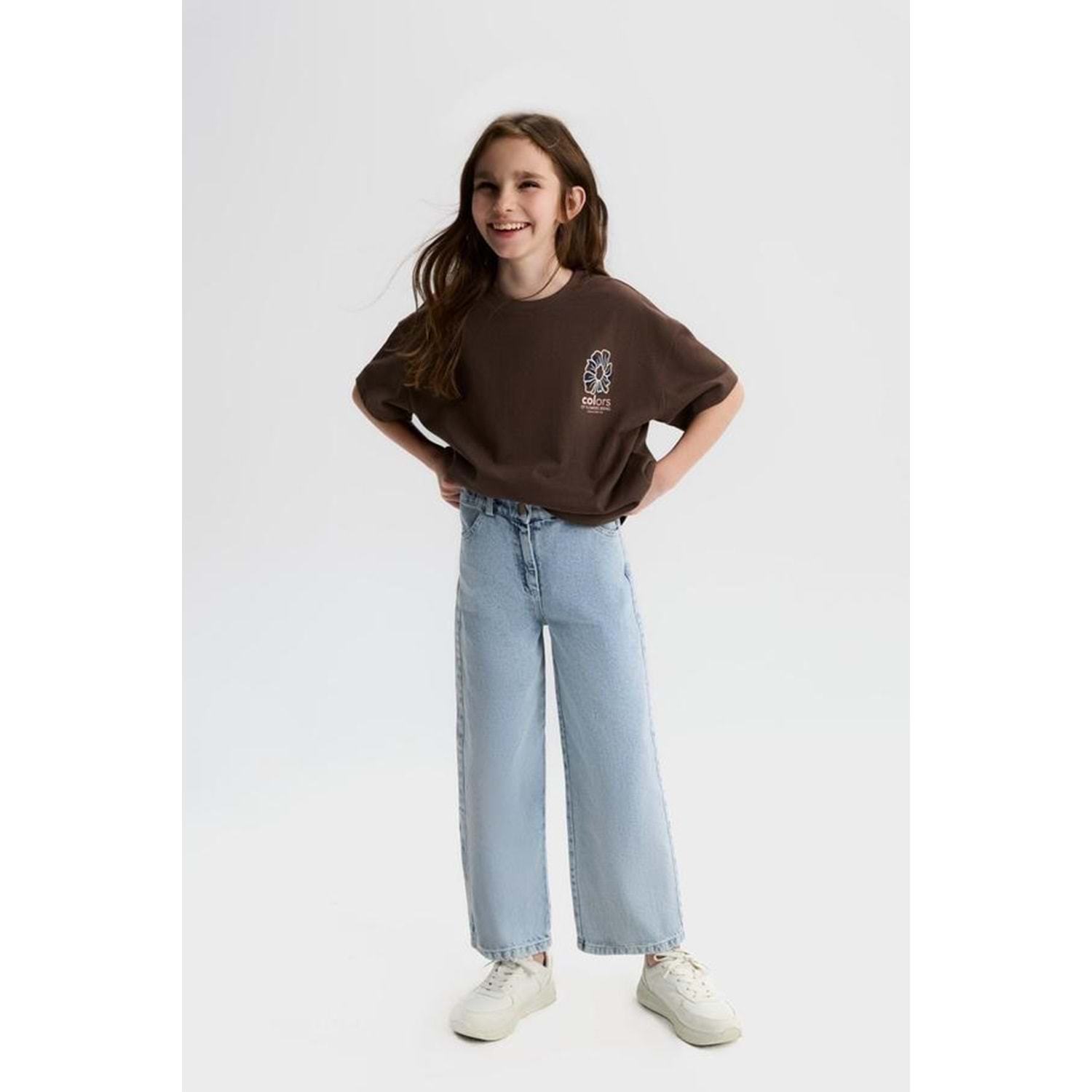 31387 ÇOCUK ÖNÜ VE SIRTI ÇİÇEK BASKILI TİŞÖRT