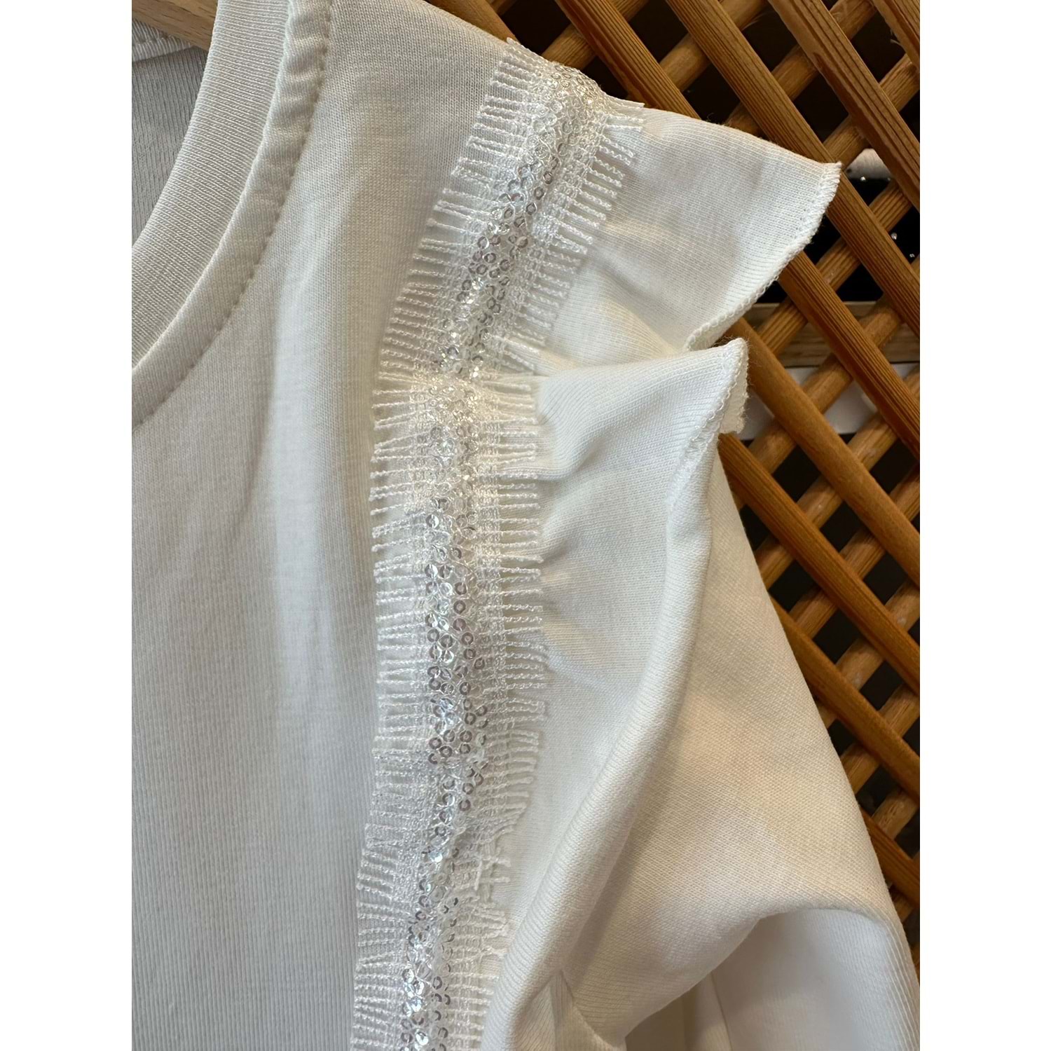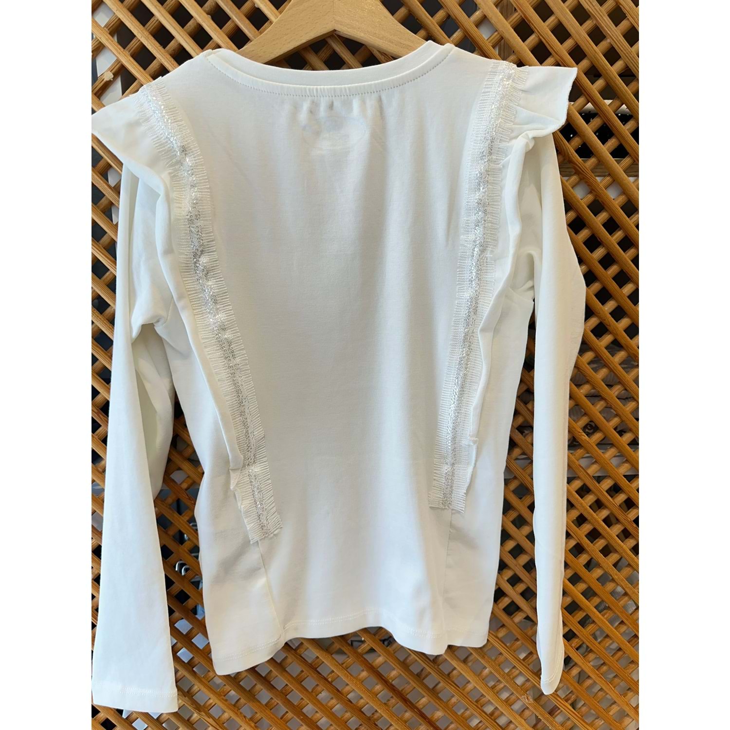 36087 ÇOCUK PAMUK PENYE YANLARI FIRFIRLI PAYET DETAY UZUN KOLLU BADİ - PD KIDS