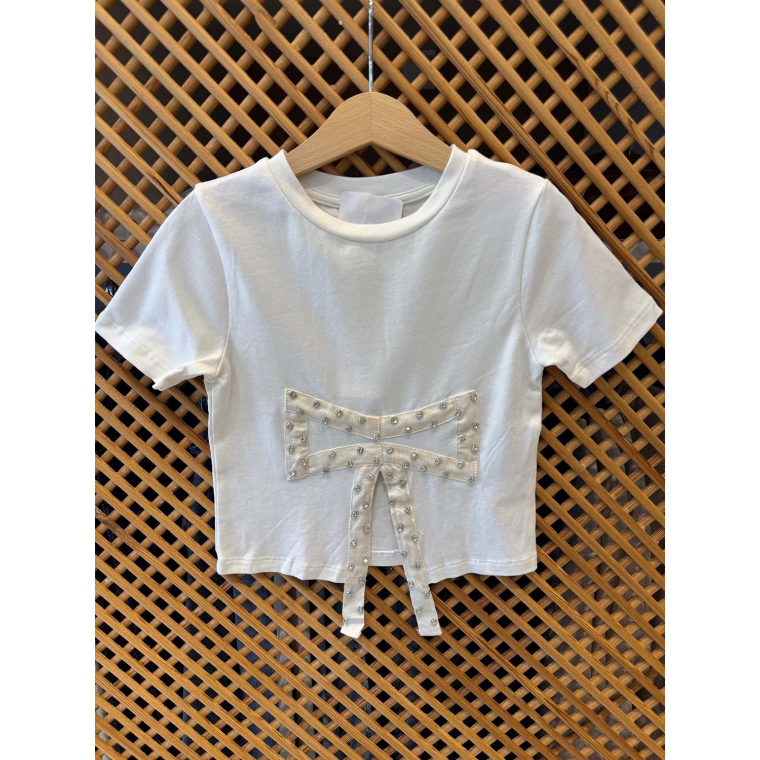 75839 ÇOCUK ÖNÜ TAŞLI FİYONK DETAYLI TİŞÖRT
