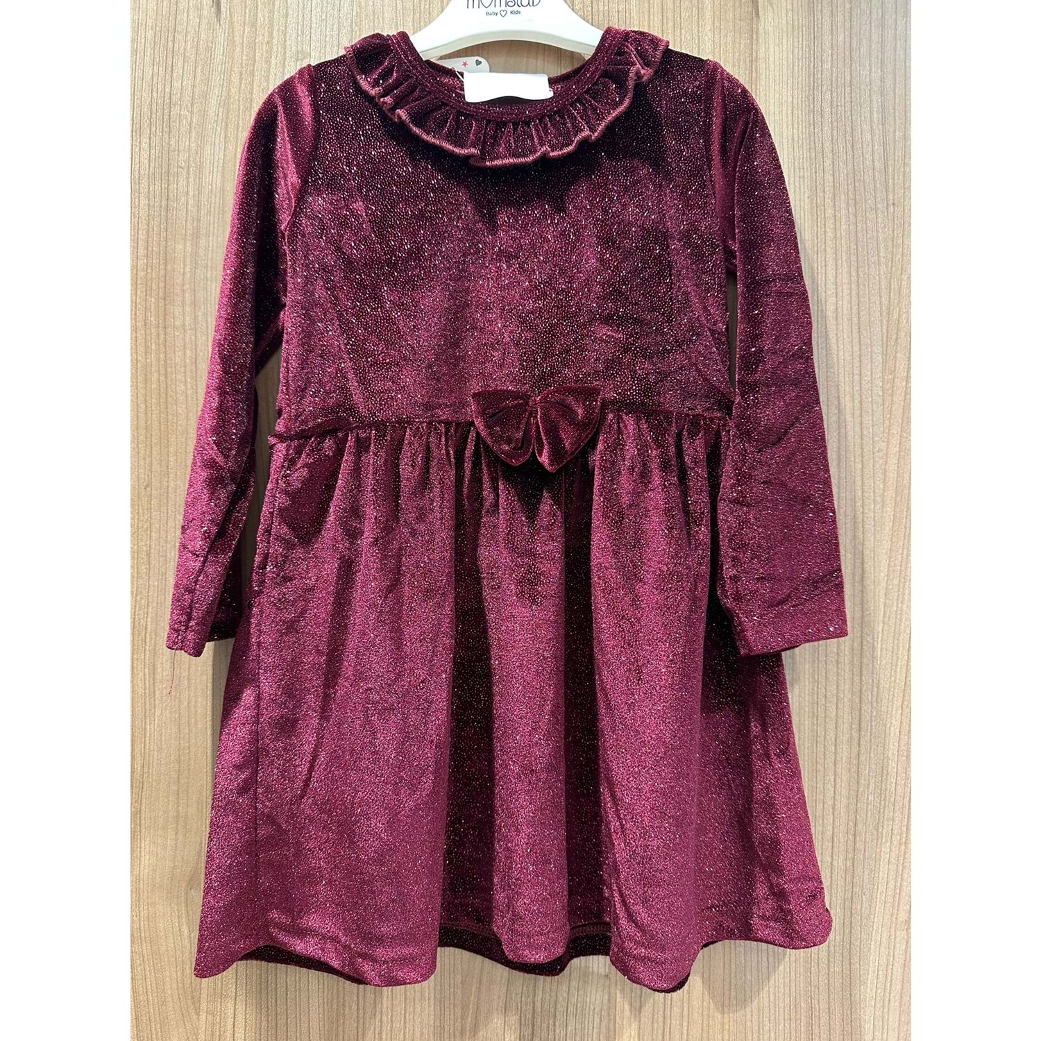 6773 KIZ ÇOCUK YAKASI FIRFIRLI KADİFE SİMLİ ELBİLSE